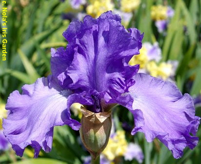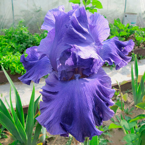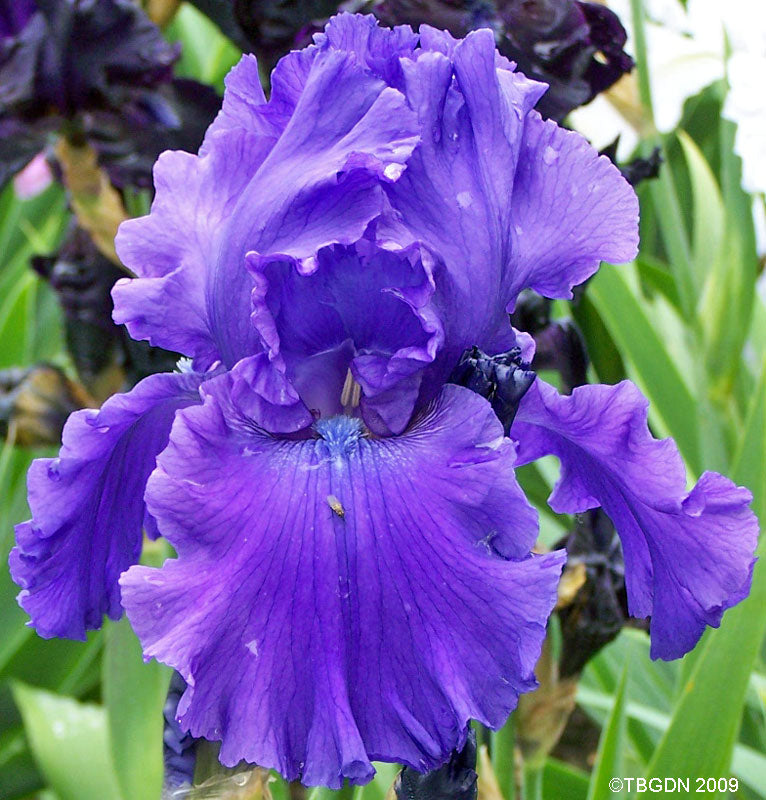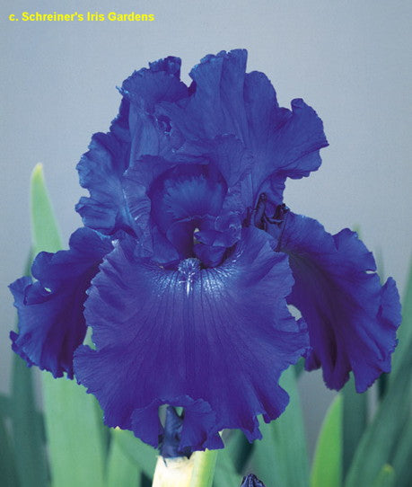 'Blue Crusader' (Schreiner, R. 1998). Seedling# CC 163-2. TB, 42" (107 cm). Late bloom and rebloom. Heavily ruffled deep blue violet (RHS 93A) self; beards blue violet. 'Honky Tonk Blues' X 'Riverboat Blues'. Schreiner 1998. Honorable Mention 2000.