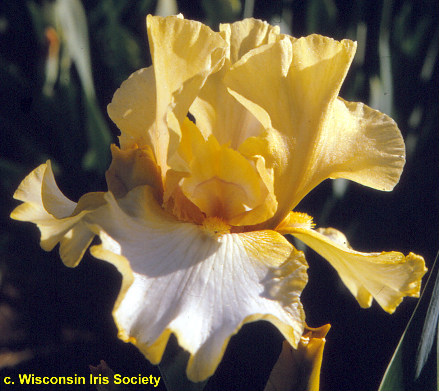 'Debby Rairdon' (Mrs. Hilbert Kuntz, R. 1964). Seedling 59-2. TB, 36" (91 cm). Midseason to late bloom. Color Class-W5Y, Subdued yellow with white on reverse side; falls pearly white with white on reverse side. Parentage unknown. Noyd 1965. Honorable Mention 1966; Judges Choice 1967; Award of Merit 1968; American Dykes Medal 1971.
