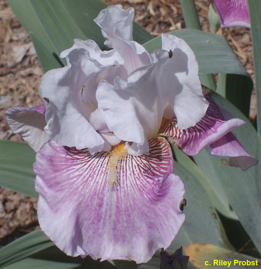 'Pickathon' (Schreiner, R. 2021). Seedling YY 640-A. TB, 42" (107 cm), Midseason to late bloom. Standards pale lavender, feathered magenta; falls lavender, darker overlay, fuchsia-red hafts; beards gold. 'Queen of the Mist' X Can’t Touch This'. Schreiner 2021.